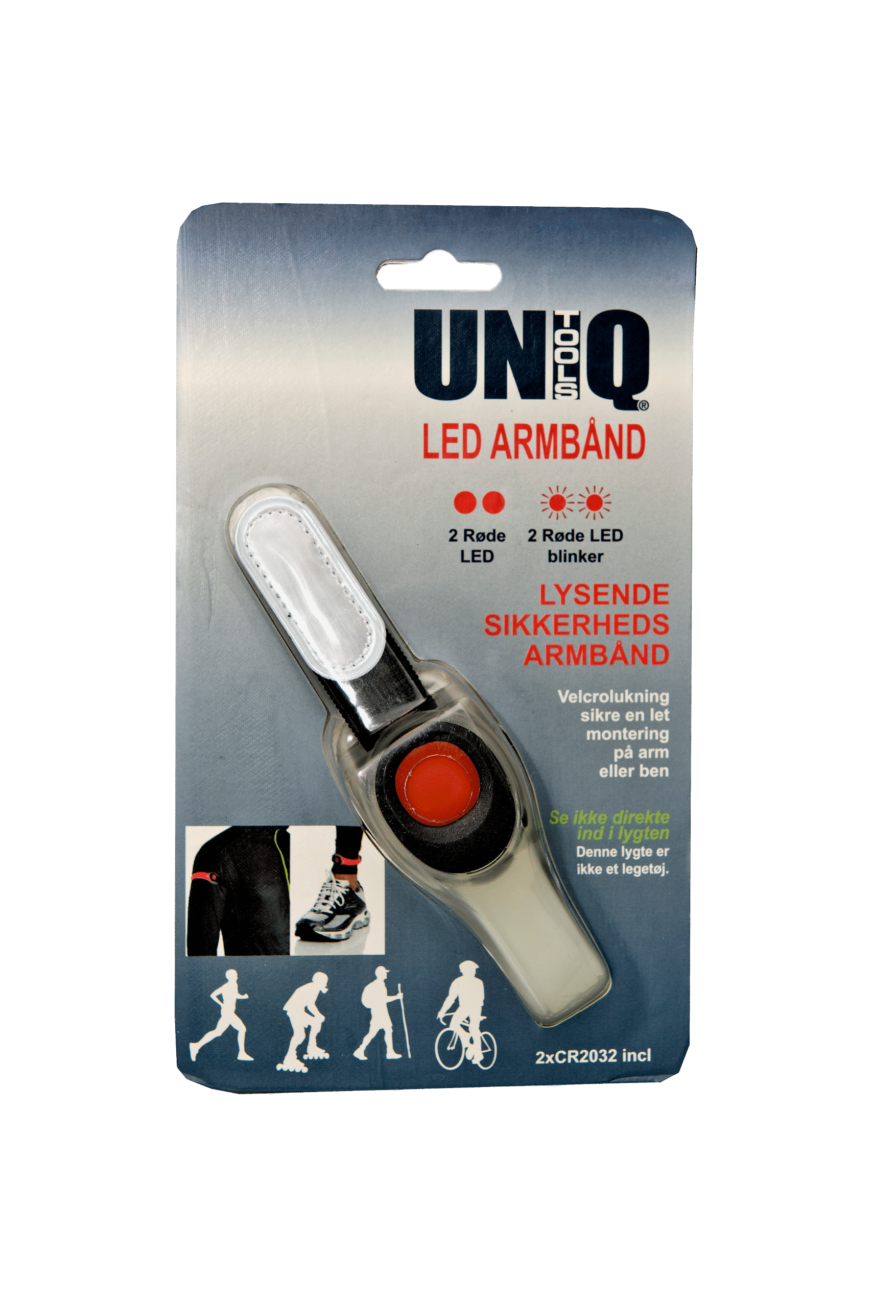 LED armbånd med 2 røde dioder med konstant eller blinkende lys. Leveres inkl. batterier og klar til brug. Velcrolukning sikre en let montering på arm eller ben. Velegnet til løbe- og gåturen, job eller mærkning af andre ting 72 timers batteritid. Vægt 1 kg Anmeldelser Der er endnu ikke nogle anmeldelser. Kun kunder, der er logget ind og har købt denne vare, kan skrive en anmeldelse.